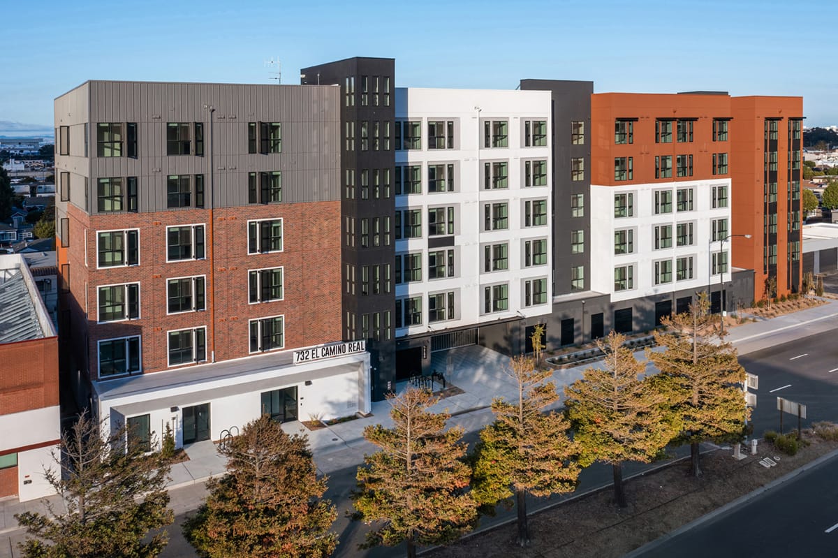 732 El Camino Real sits on one of San Mateo County's busiest boulevards. Besides the headquarters of YouTube, Walmart Global eCommerce, and other big names, the new multifamily community is just minutes from the San Francisco Airport. It has quickly brought 134 apartments within reach in an area where “low-income” status tops out at $100,000.