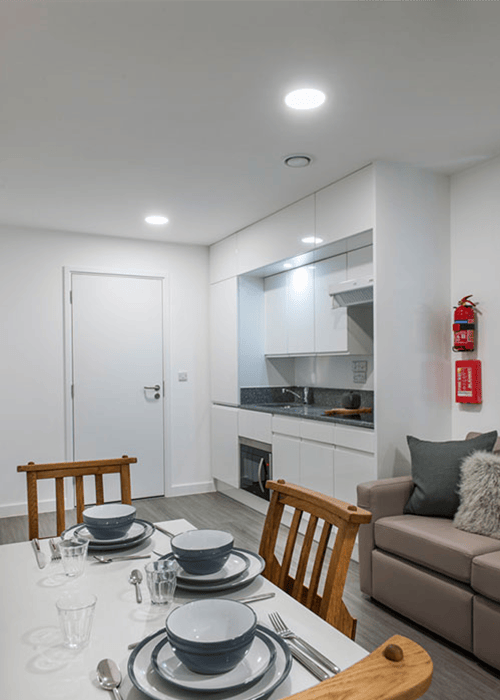 The Vision Volumetric System was chosen as the central construction method for this project due it's high level of finishes, significantly reduced level of construction defects, its faster construction program and guaranteed delivery date. Considering that this development is a student accommodation development, the date of handover was a critical factor for the project. The use of volumetric modular construction ensured that the project was completed before August 2016 which enabled student occupation for the 2016/2017 academic year. The total construction program of 11 months was faster than traditional construction, allowing for the client to take ownership 1 year earlier, thus getting an earlier return on investment. Coupled with this the high level of finishes and reduced construction defects lead to lower operating costs for the building for the client.